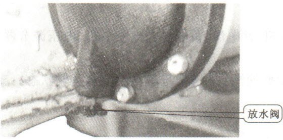 首先打開潤滑油冷卻器放水間,如圖6-38所示。若發(fā)現(xiàn)放出的冷卻液中有潤滑油或白色渾濁物時,然后再從潤滑油冷卻器上打開放油閥,如圖6-39所示。若放出的潤滑油是白色渾濁物時,可斷定潤滑油冷卻器內(nèi)部芯子或密封墊片損壞。