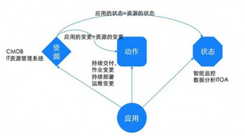 在ITIL時代,大家都知道一個概念,CMDB是IT服務(wù)系統(tǒng)的元數(shù)據(jù)中心,而現(xiàn)在應(yīng)用更應(yīng)該是CMDB的元數(shù)據(jù)。把運維的能力建立在面向應(yīng)用的維度上,把面向應(yīng)用的IT能力分成三部分: