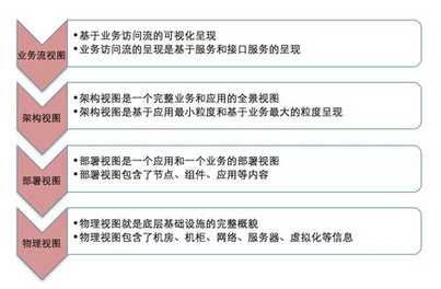 但一定要注意CMDB的信息分成兩類,一類是實例信息,一類是連接信息,也稱為拓撲信息。拓撲信息需要結(jié)合我們平時的工作思路來建設(shè)和維護,比如說架構(gòu)視圖,是研發(fā)轉(zhuǎn)維的過程中,必須要提供的輸入,就是應(yīng)用架構(gòu)文檔。部署視圖,是指這個應(yīng)用上線部署在哪些機房,哪些node;A(chǔ)架構(gòu)拓撲是物理overlay,這個地方表達的是基礎(chǔ)設(shè)施層面的關(guān)系。業(yè)務(wù)流視圖分成應(yīng)用服務(wù)和端到端服務(wù)構(gòu)建的能力視圖,類似訪問流拓撲。