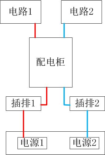 上面這種,從電路到電纜全都是兩套供電裝置的方式即為雙路電源,能允許任何一個(gè)位置單點(diǎn)故障而不影響最末端的IT設(shè)備使用。請(qǐng)注意,我這里用兩種顏色來(lái)表示電纜,電路1和電路2分別經(jīng)由兩條來(lái)自不同位置的供電電纜同時(shí)進(jìn)入機(jī)房配電柜,由配電柜出來(lái)也是經(jīng)由兩條電纜進(jìn)入機(jī)柜內(nèi)兩條插排的。這是真正的雙路電源供電模式,安全可靠性是最高的。