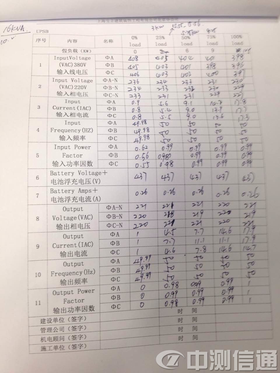 2016年8月20日,北京中測信通進入北京啟皓中心進行機房測試,測試的主要內容為ups測試及蓄電池放電。 以下為項目測試時的部分進度照片: