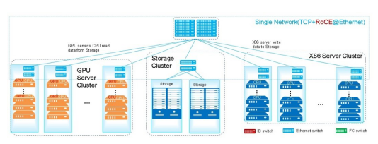 不同類型的應(yīng)用對數(shù)據(jù)中心網(wǎng)絡(luò)有著不同的要求。前端網(wǎng)絡(luò)通常采用TCP協(xié)議,IP/以太網(wǎng)絡(luò)技術(shù)成為前端網(wǎng)絡(luò)主流技術(shù),成本低、擴(kuò)展性好;存儲網(wǎng)絡(luò)一直在追求大帶寬高吞吐以充分發(fā)揮存儲盤和CPU的效率,上世紀(jì)90年代末采用同時(shí)期比Ethernet速率更高的FC技術(shù)。進(jìn)入20世紀(jì),隨著更高速率的SSD的規(guī)模應(yīng)用,特別是近來高速低時(shí)延的NVMe技術(shù)的出現(xiàn),存儲需要更高速更高效的網(wǎng)絡(luò);計(jì)算網(wǎng)絡(luò)主要采用InfiniBand專網(wǎng),典型代表為HPC等高性能業(yè)務(wù),低時(shí)延是其極致追求。但隨著RoCE技術(shù)的深入發(fā)展,Ethernet在計(jì)算網(wǎng)絡(luò)中的應(yīng)用也逐漸普遍。