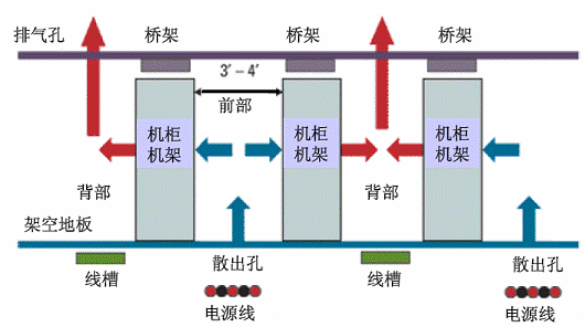 機(jī)柜按行排列,采用冷熱通道的技術(shù),背靠背布局