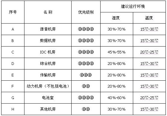 上表中所列舉溫度是該設(shè)備正常工作所需要的環(huán)境溫度條件;從表中可以得知,除蓄電池需要嚴(yán)格的溫度范圍(20-25℃)外,其他設(shè)備工作溫度可以在15-30℃之間;