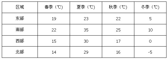 下表列舉了全國(guó)各城區(qū)季度平均溫度情況,通過了解這些信息幫助我們實(shí)時(shí)的對(duì)機(jī)房所需溫度進(jìn)行調(diào)整;