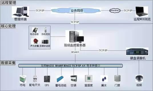 機房環(huán)境監(jiān)控系統(tǒng)是一個綜合利用計算機網(wǎng)絡技術、數(shù)據(jù)庫技術、通信技術、自動控制技術、新型傳感技術等構成的計算機網(wǎng)絡,提供的一種以計算機技術為基礎、基于集中管理監(jiān)控模式的自動化、智能化和高效率的技術手段,系統(tǒng)監(jiān)控對象主要是機房動力和環(huán)境設備等設備(如:配電、UPS、空調(diào)、溫濕度、漏水、煙霧、視頻、門禁、消防系統(tǒng)等)。